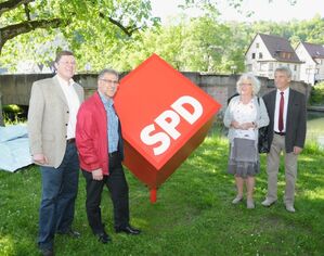 Anlässlich 150 Jahre SPD hat der Sulzer Ortsverein am Samstag neben der Waldhornbrücke ein Denkmal in Form eines roten Würfels aufgestellt. Die Freude bei der Enthüllung war groß und der Ortsvereinsvorsitzende Klaus Eisenhardt konnte viele Gäste begrüßen.
